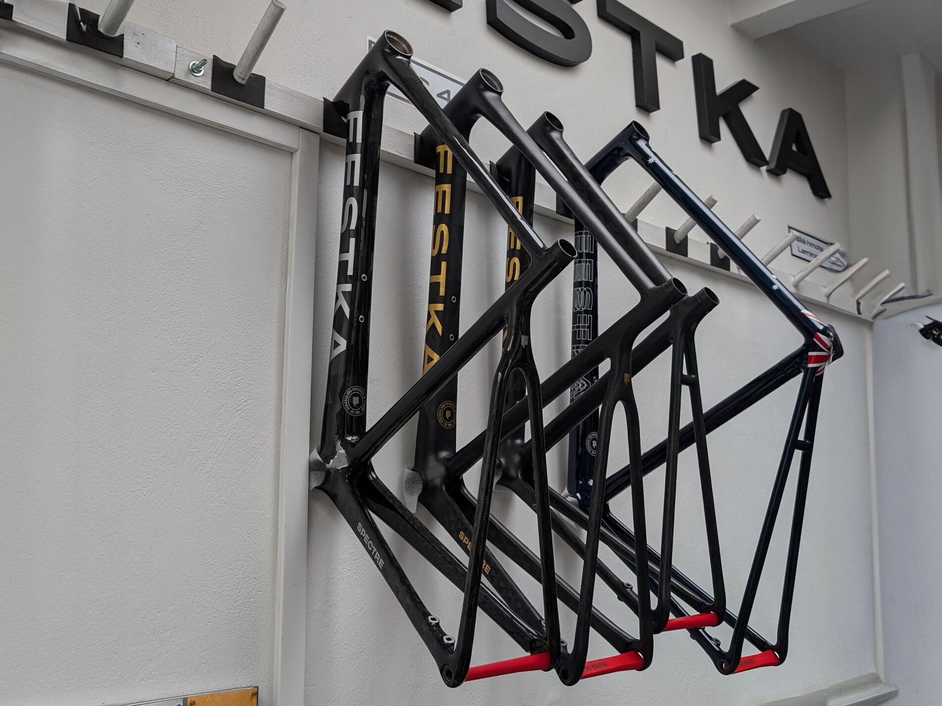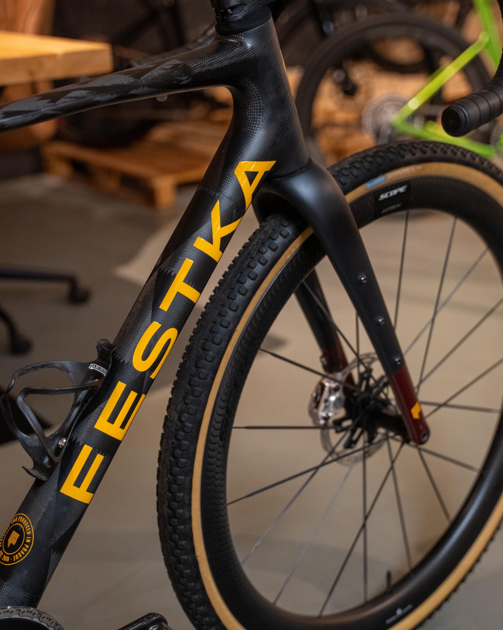 We already touched on the production process briefly. Festka uses filament-wound carbon tubes that are hand-joined. It’s a classic framebuilding method that, combined with a modern aesthetic, results in something truly unique. Building a Festka frame requires countless hours of skilled work and attention to detail, and the brand continues to refine their frames through small but well-considered changes executed with the highest precision.