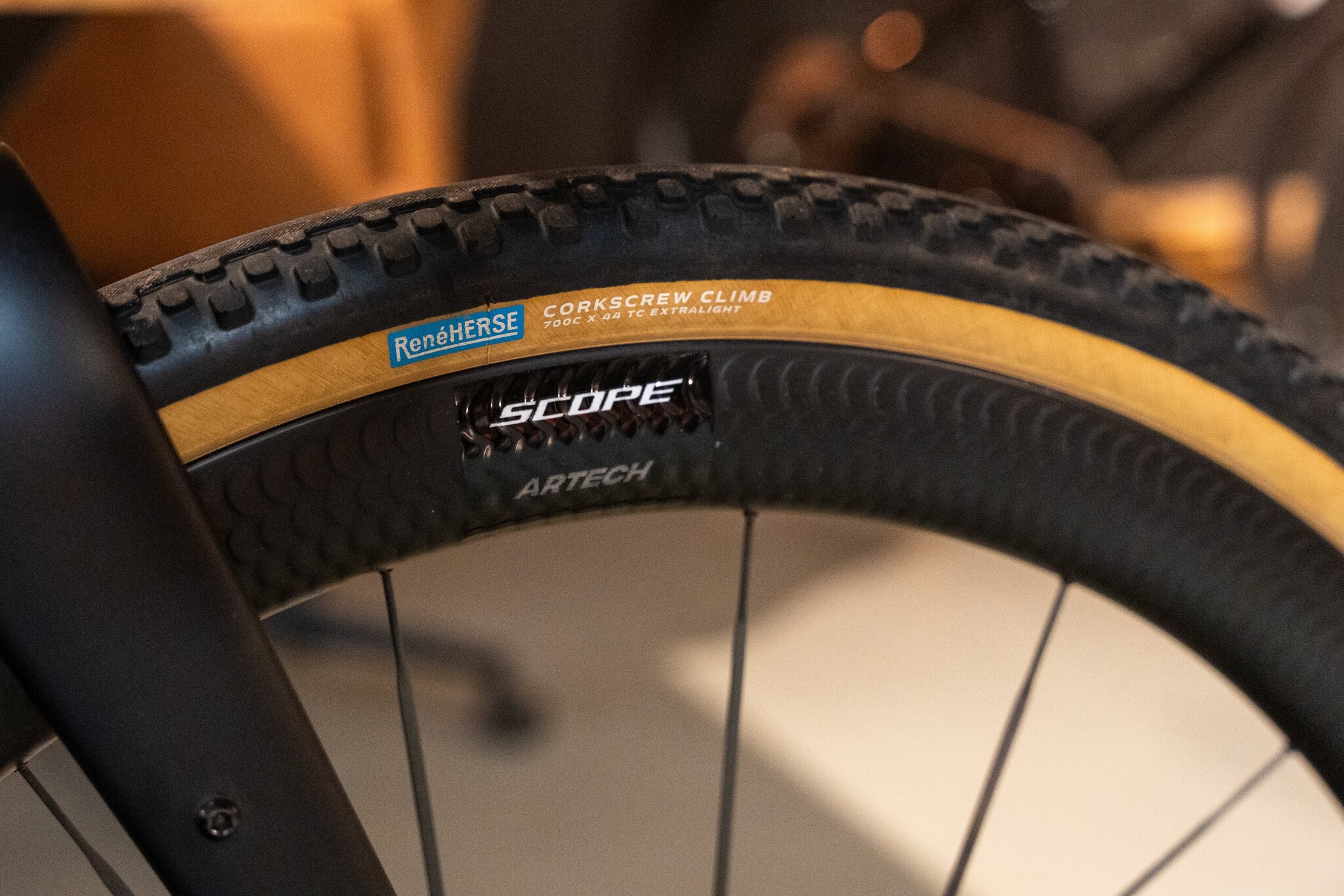 There’s been a lot of discussion about tires recently, and I had read many positive reviews about the Rene Herse Corkscrew Climb (44 mm). It’s a semi-slick with integrated tread, offering plenty of grip in corners while still rolling fast. Available in different casings, I (of course) opted for the most supple one, aiming for that cyclocross-like feel and maximum feedback.