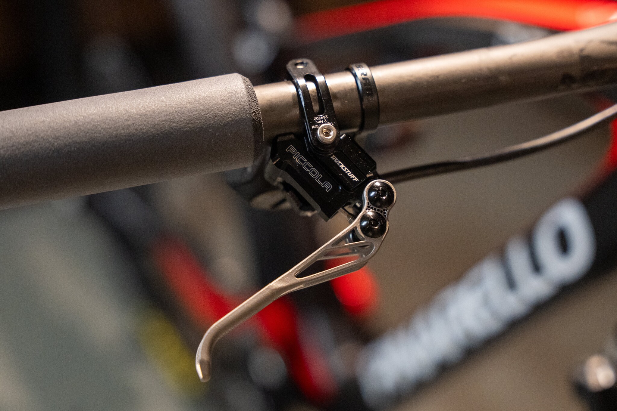 For braking power, we installed the brand-new Trickstuff Picola HD brakes with 3D-printed levers. Light, powerful, and visually stunning—paired with Trickstuff rotors for maximum stopping power.