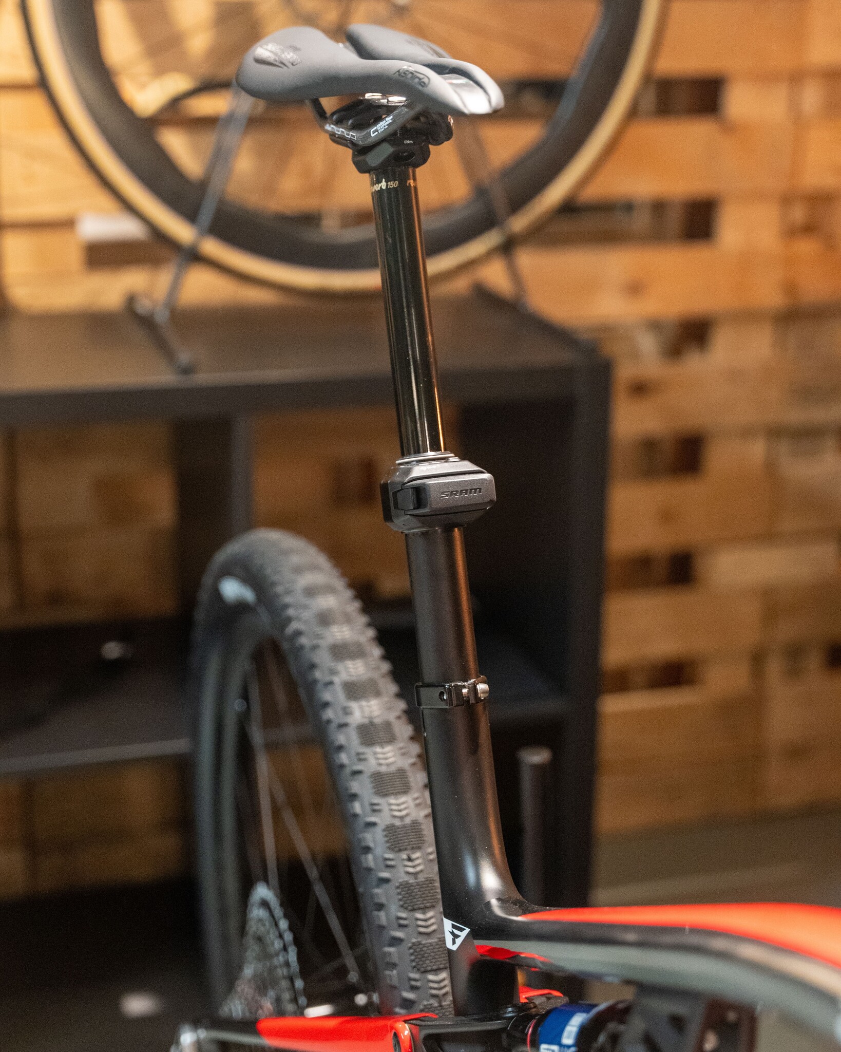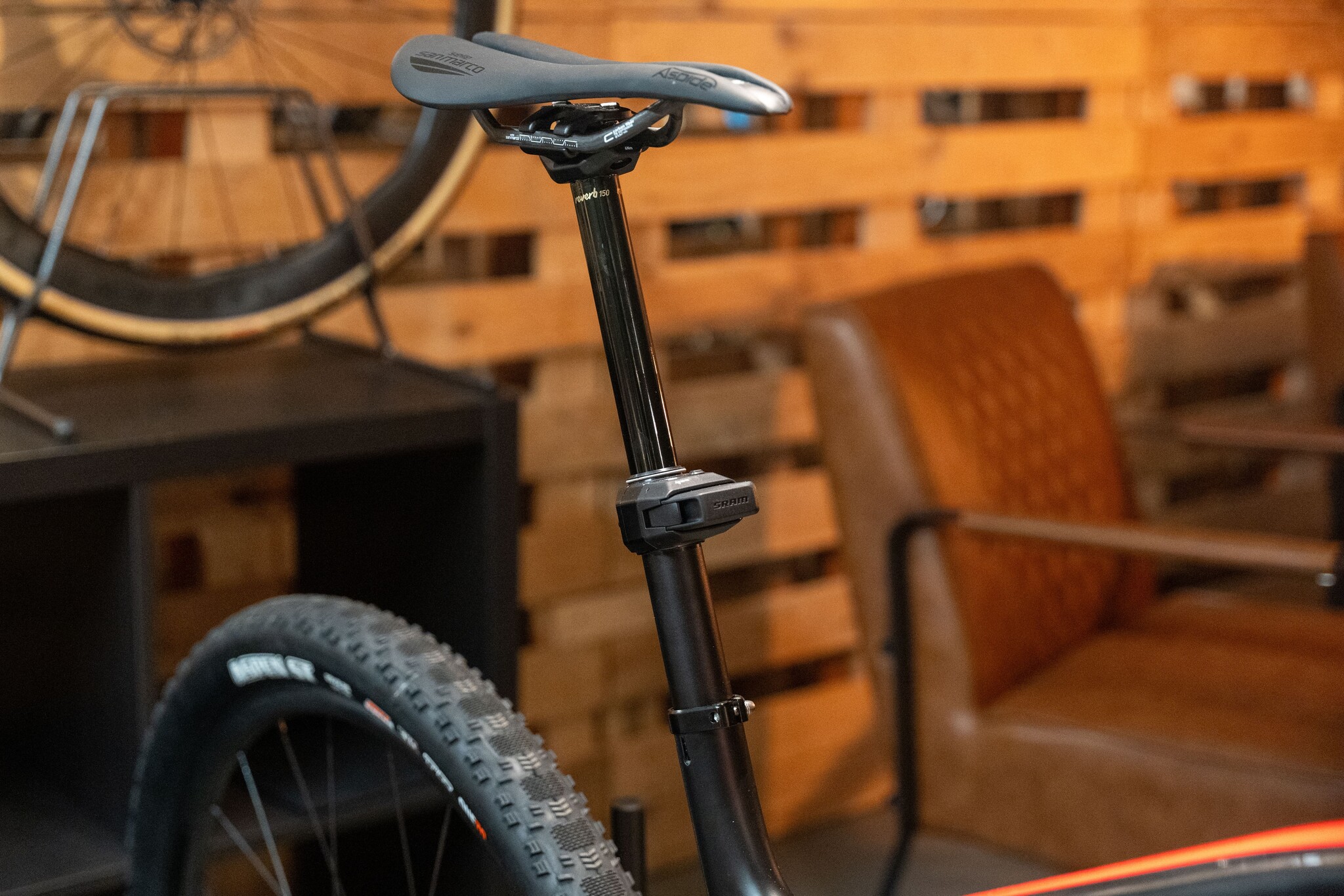 The latest RockShox Reverb AXS dropper post completes the cockpit. Wireless, fast, and controlled via the SRAM AXS POD on the handlebars. Clean and simple.