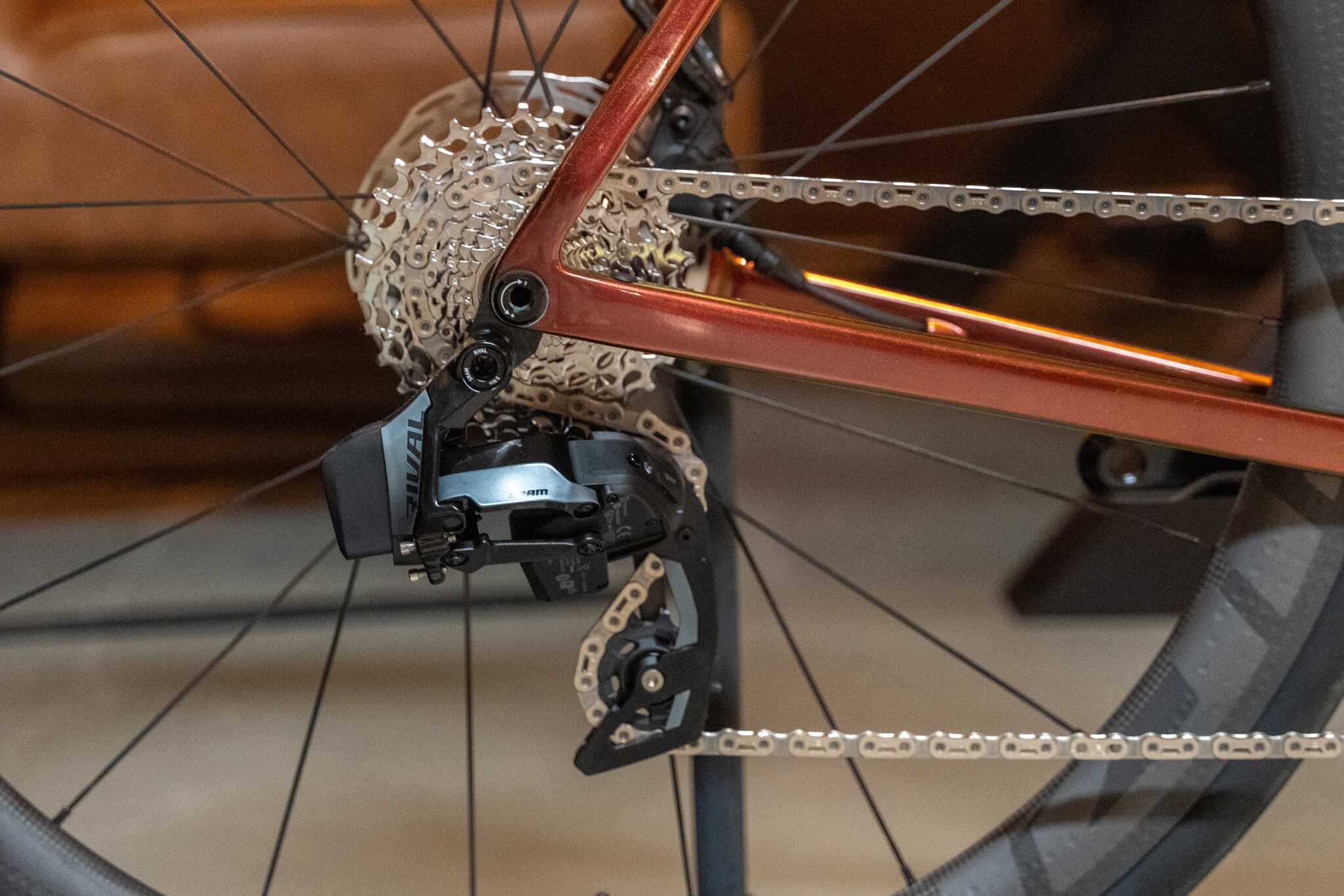 Wat betreft gewicht zien we een duidelijke besparing ten opzichte van de vorige generatie Rival AXS. Dankzij de lichtere crank en vernieuwde cassette ligt het totaalgewicht van de groep aanzienlijk lager, wat je direct merkt bij het klimmen en accelereren.